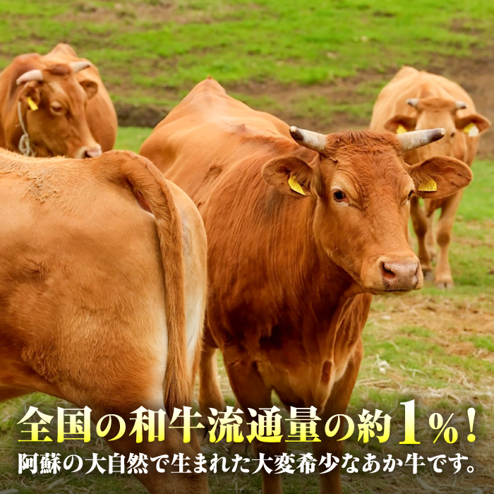 あか牛(褐毛和種)は、全国の和牛肉流通量の1%程しか市場に流通しておらず、大変に希少な牛肉です。