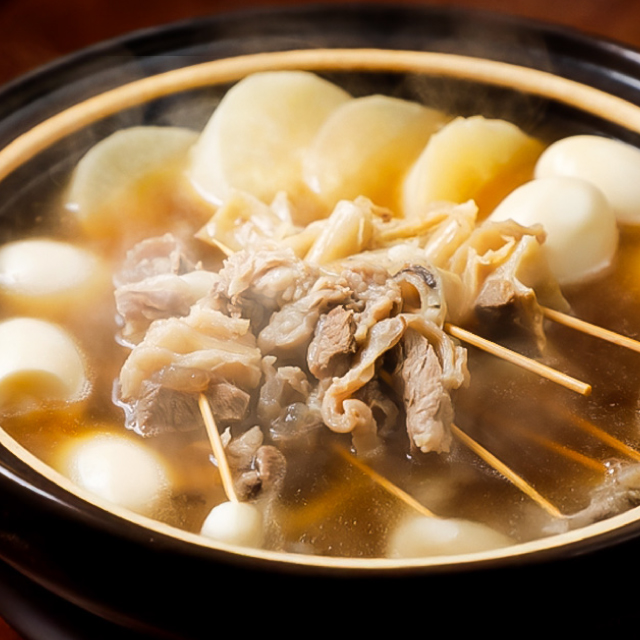 あか牛の牛すじは、じっくり煮込むことで、とろけるような柔らかさと深いコクが染み出し、格別の味わいに。