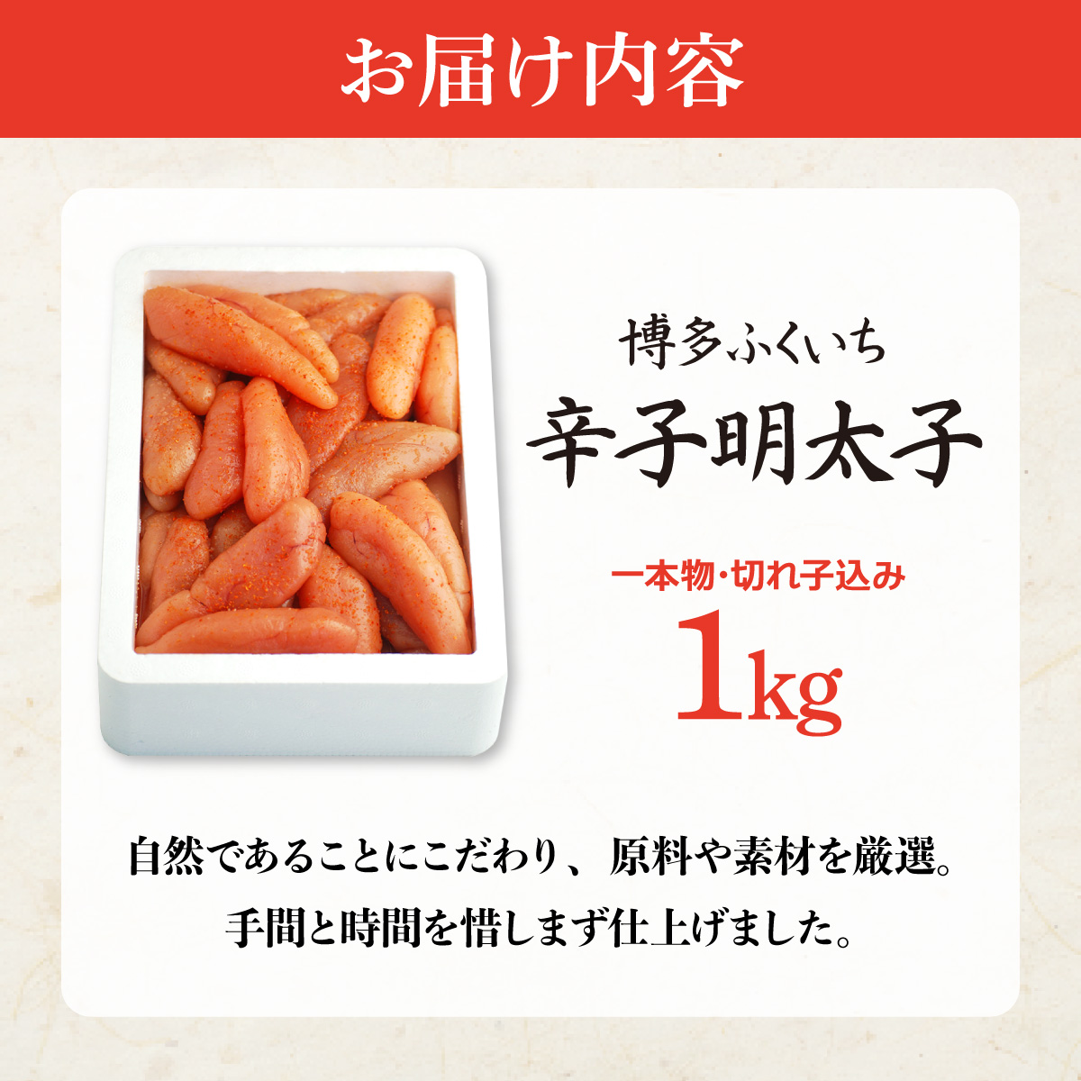 博多ふくいち 無着色辛子明太子1kg(一本物・切れ子込み)HF017