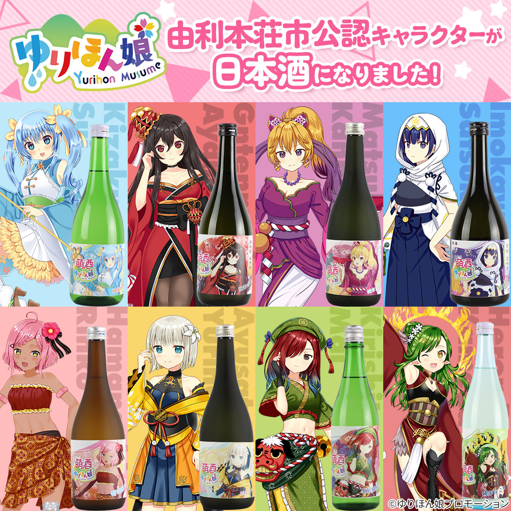 由利本荘市全8地域のキャラクターをあしらったお酒で、由利本荘地域に興味を持って頂けると幸いです。実店舗の方にも是非ご来店くださいませ。