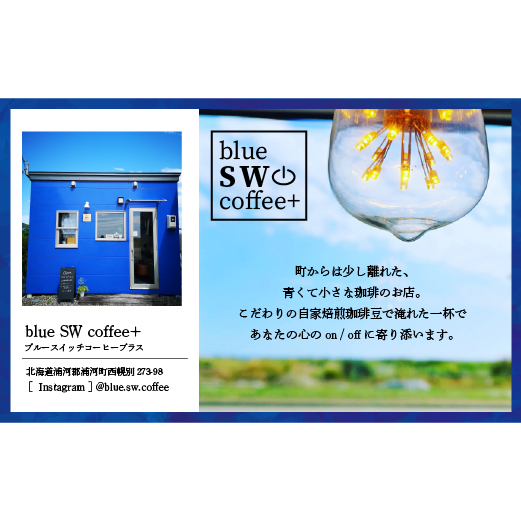 北海道浦河町にある小さな珈琲店『blue SW coffee +(ブルースイッチコーヒープラス)』店主こだわりのオリジナルブレンド(豆)のセットです。
