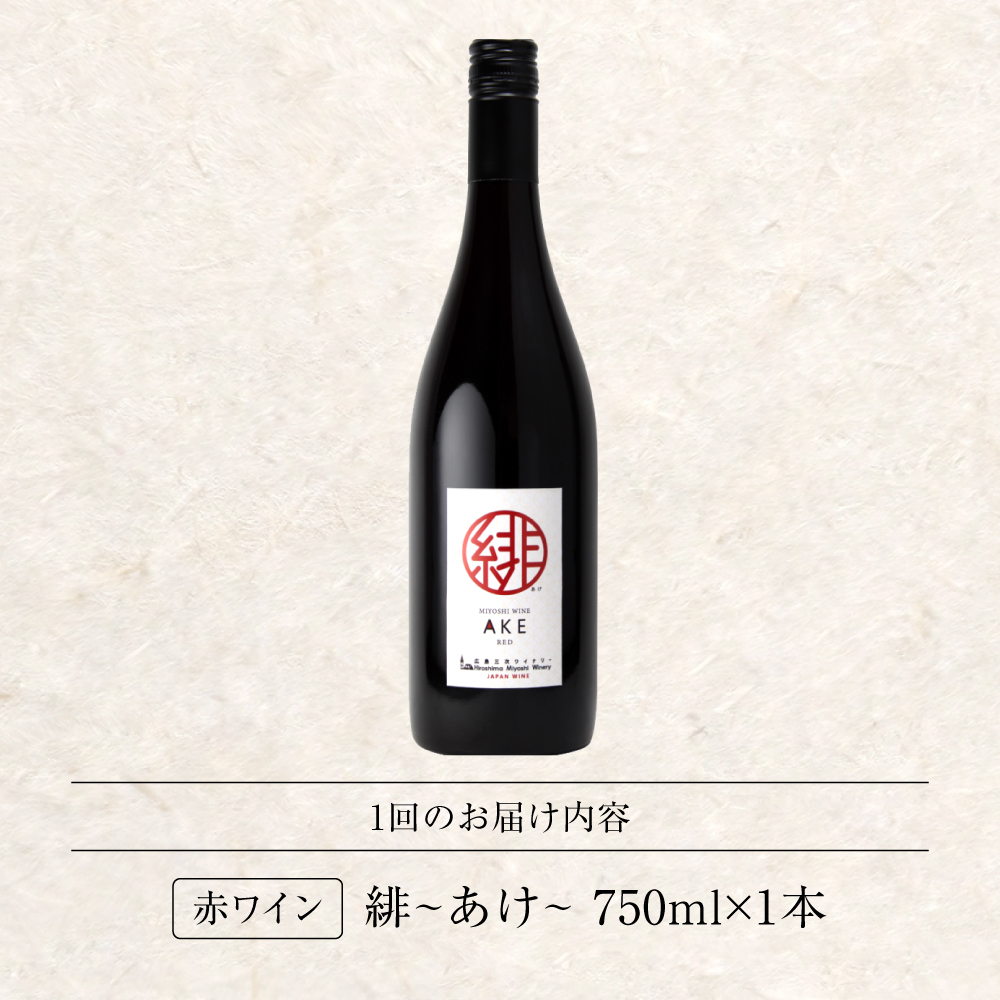【全6回定期便】緋 あけ 赤ワイン ライトミディアム 750ml 1本 赤 ワイン ギフト 三次産 ぶどう 葡萄 ブドウ 三次市 / 広島三次ワイナリー [APAZ059]