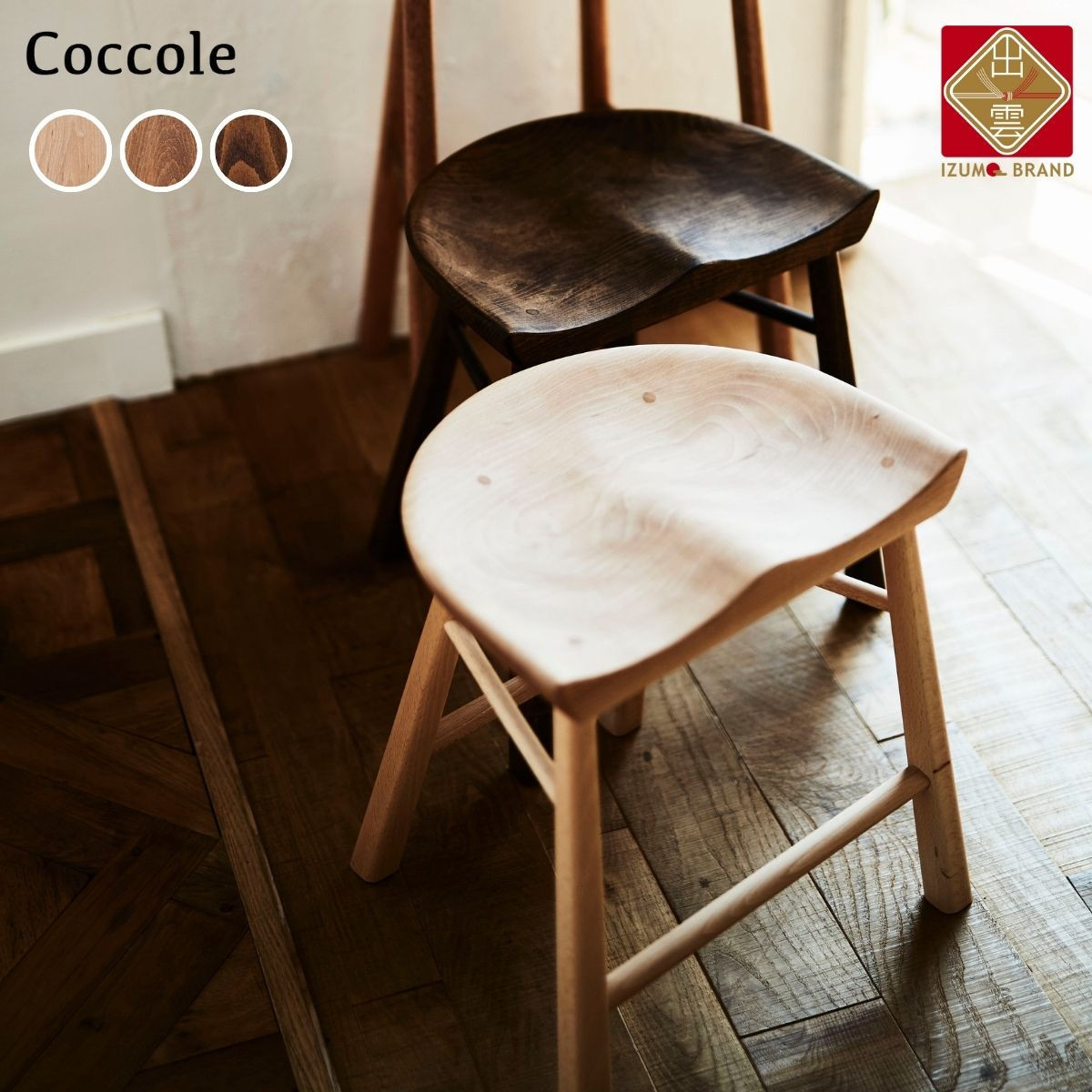 7. スツール ダイニングチェア 椅子 木製 1脚 単品 チェア 完成品 座面高さ45 軽量 ビーチ材 無垢材 北欧 おしゃれ リビングチェア 丸椅子 玄関 スツール 腰掛け 椅子 サイドテーブル 木の椅子 Coccole C224B 4脚
