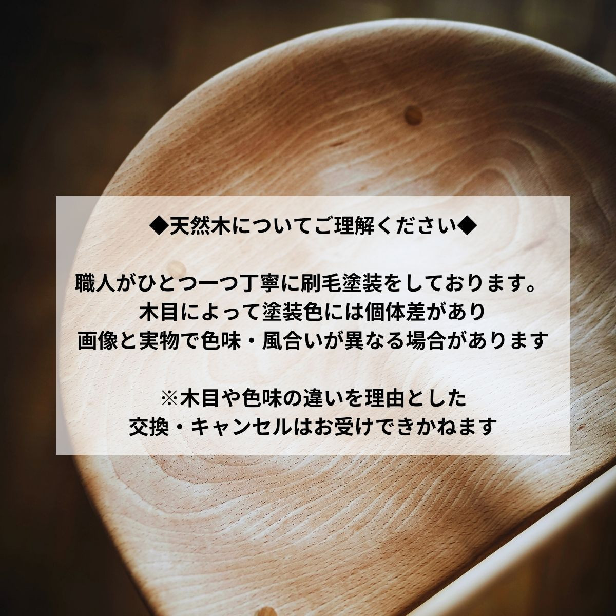・木目や色味の違いを理由とした交換・キャンセルはお受けできません。