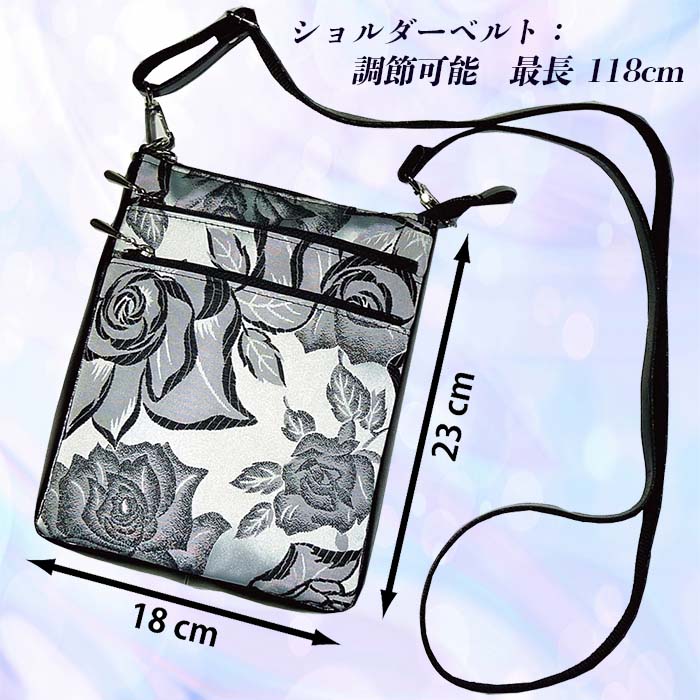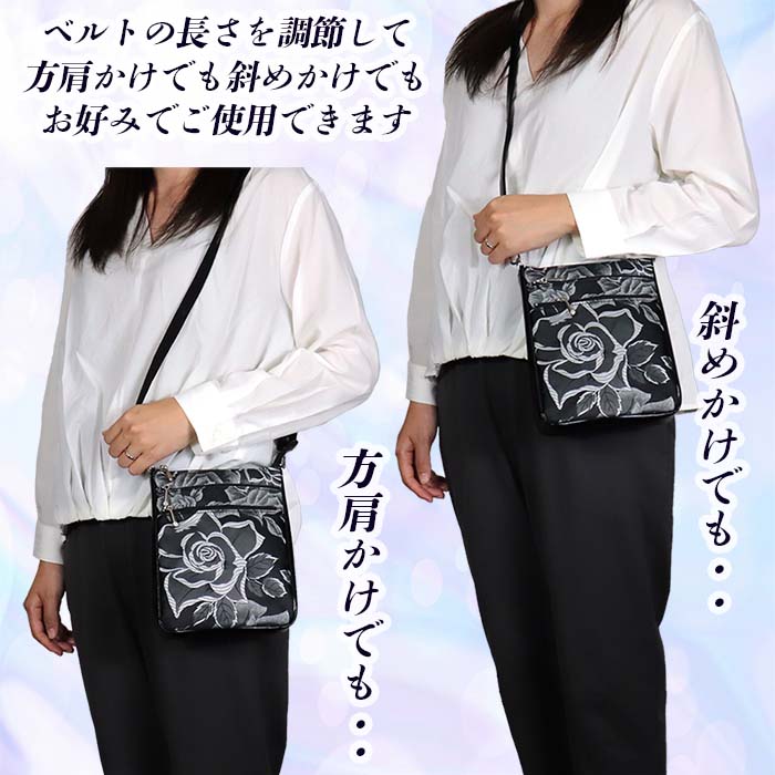 ・ローズ柄 ブラック ポシェット BR-62 縦型 日本製 ミニショルダーバッグ レディース[1点]
