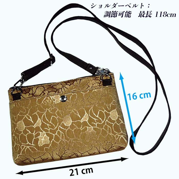 ローズ柄 ブラック ポシェット TJ-50 縦型 日本製 ミニショルダーバッグ レディース / まちづくり観光振興機構 傘生地 ちりめんジャガード 旅行 ウォーキング 防水 奈良県 田原本町