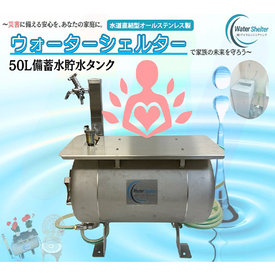 「ウォーターシェルター」日本水道協会認定の50L備蓄水タンク(水道直結型オールステンレス製)