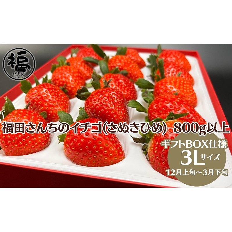福田さんちのイチゴ(さぬきひめ) 3Lサイズ 800g以上 ギフトボックス2箱【配送不可:北海道、沖縄県、離島エリア】苺 農園直送 いちご採れたて直送