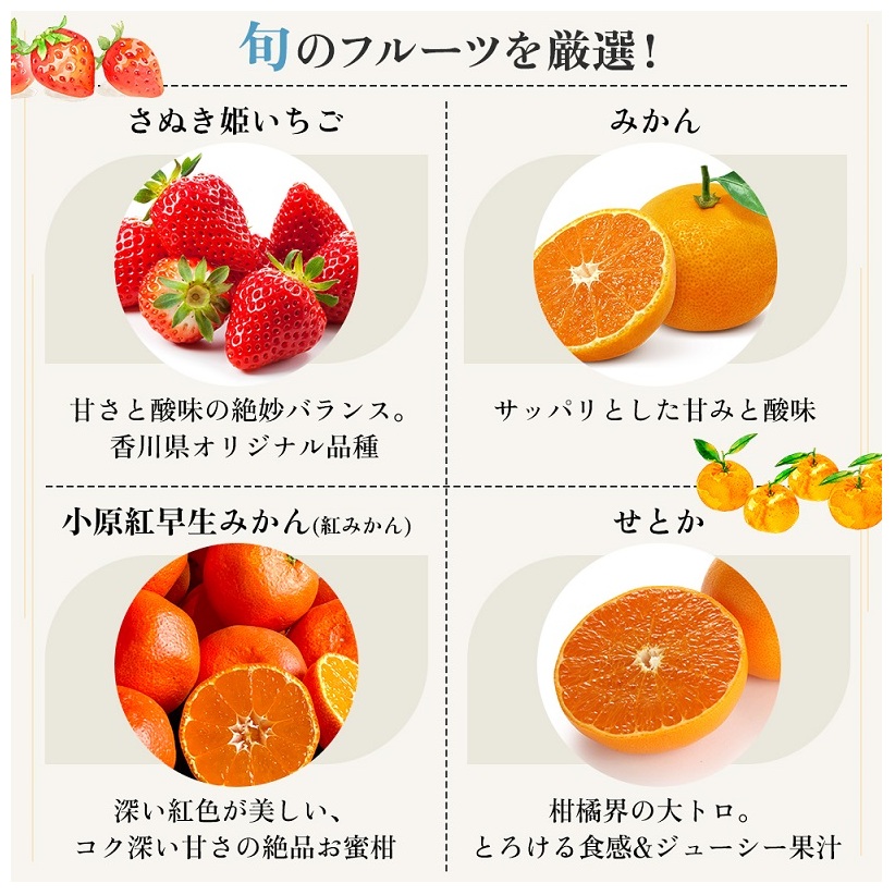 (4月)いちご、キウイ、せとか、デコポン、スイートスプリング、ジューシー柑、清見オレンジ