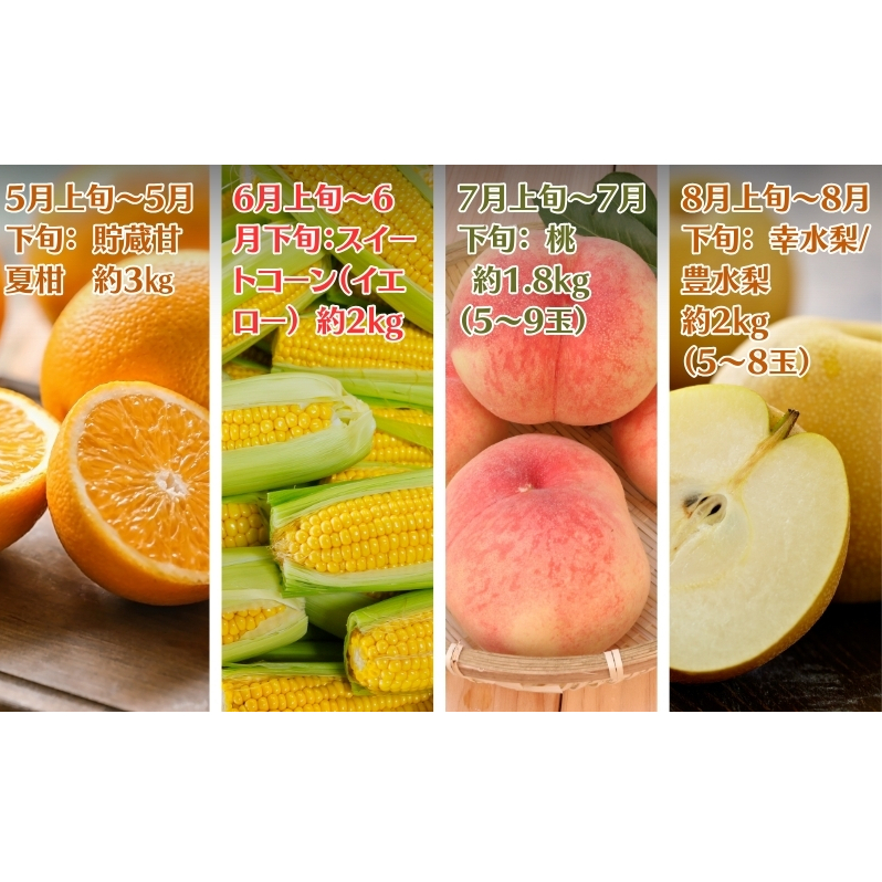 ※お届けは青果の生育状況等により前後する事があります。また、天候等の影響により予定しております青果が大幅な不作となった場合は他の青果へ変更させて頂く事がございますのでご了承願います。