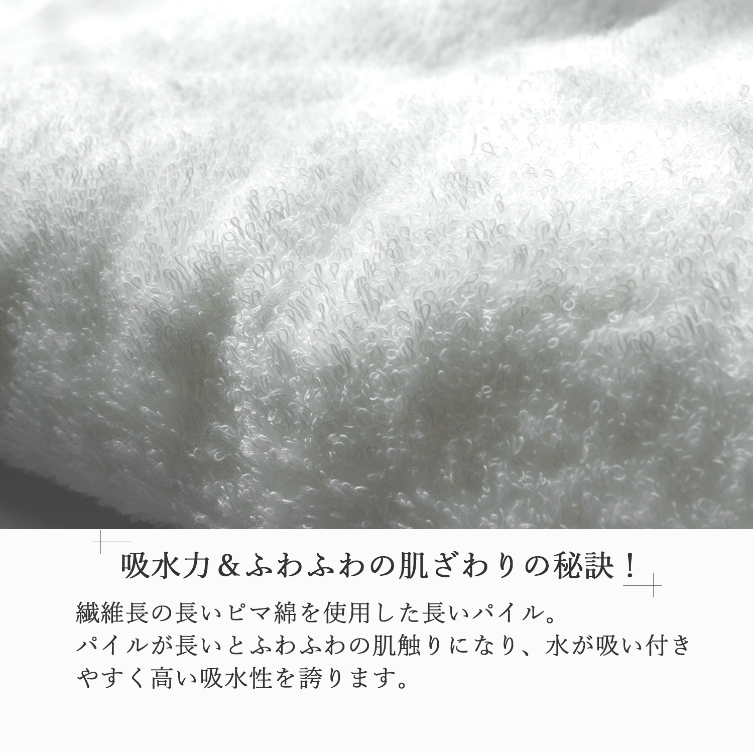 「MEZAMEシリーズ」は、アメリカのカリフォルニア州サンホーキンバレーで栽培された繊維長の長いピマ綿を使用しており、長いパイルがふわふわの肌触りと高い吸水性を誇ります。