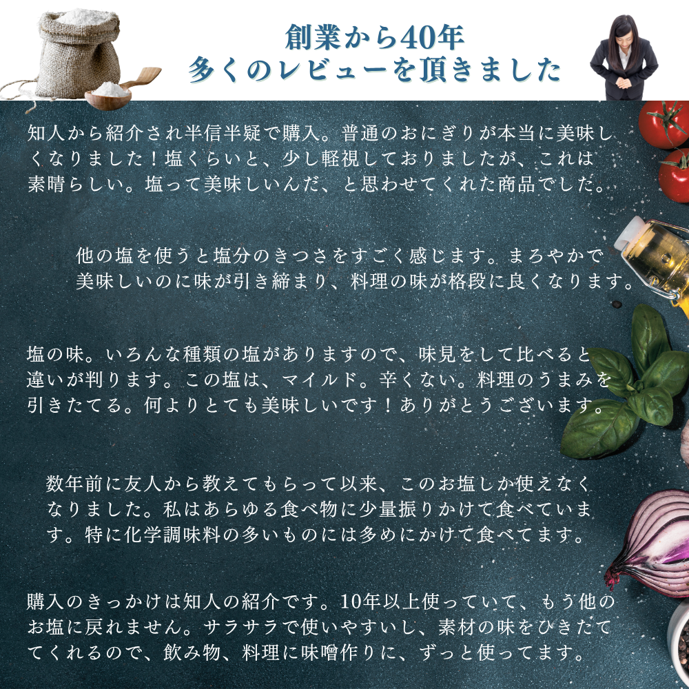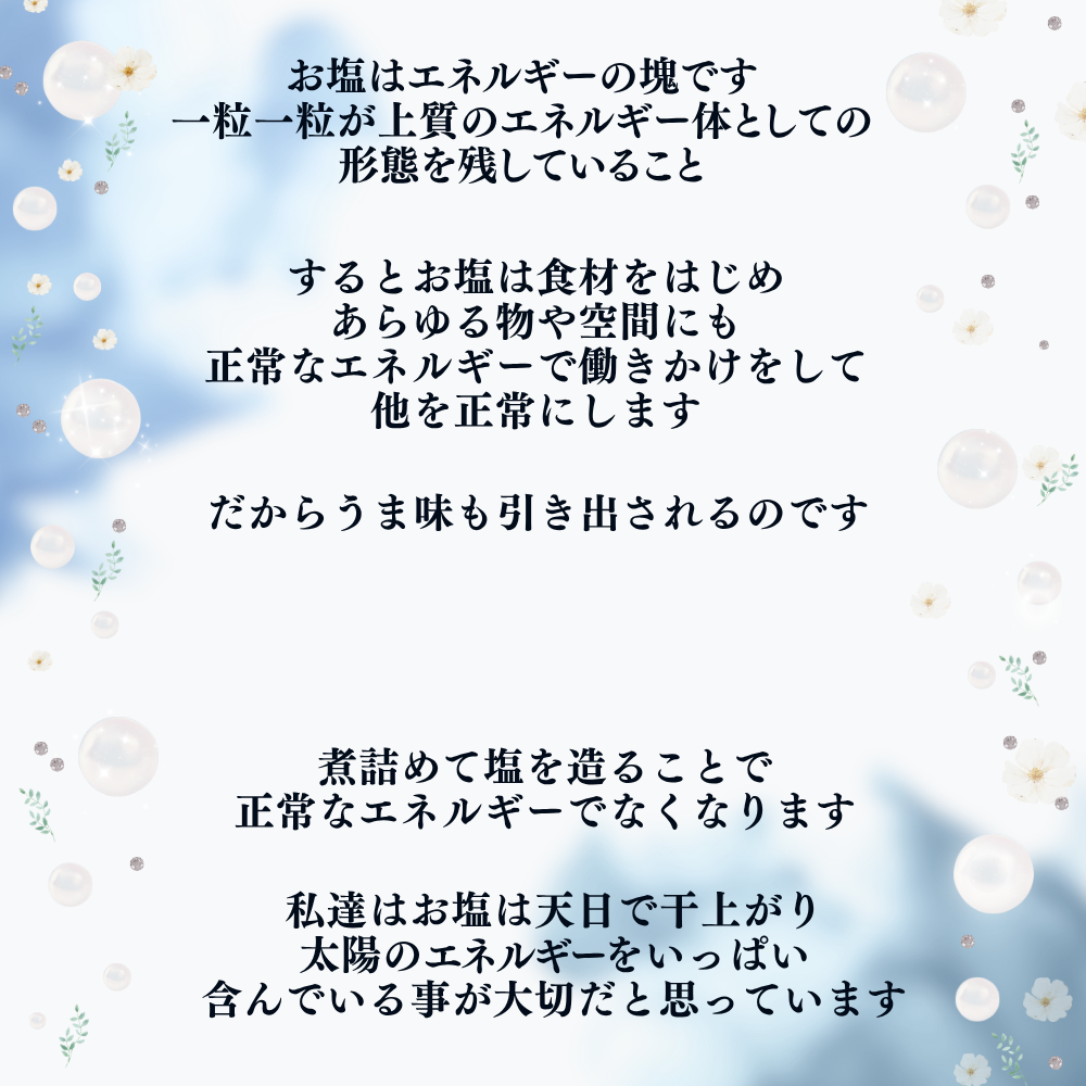 【どんな塩? 火入れせず自然の風と天日の力で生まれた塩】