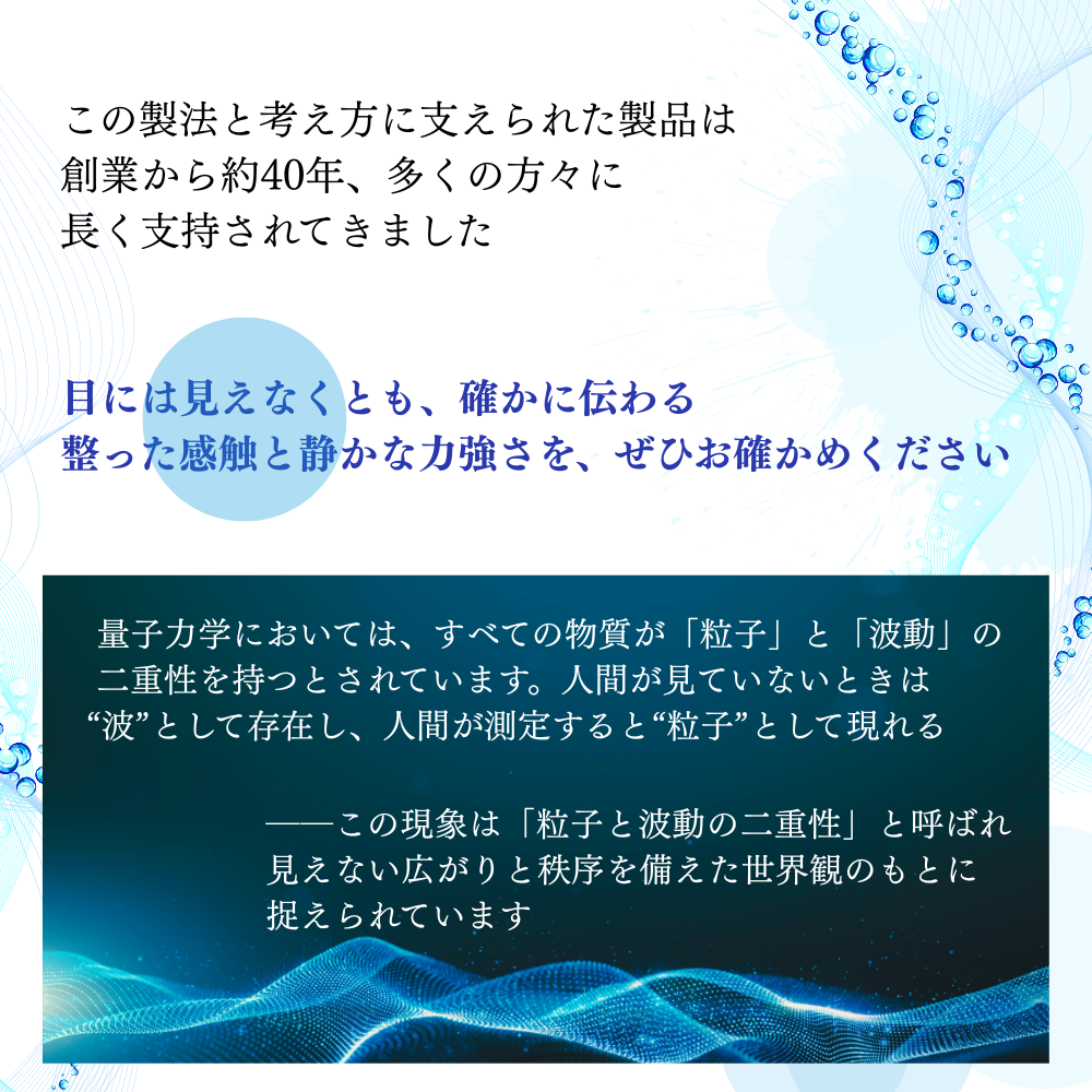 目には見えなくとも、確かに伝わる整った感触と静かな力強さを、ぜひお確かめください。