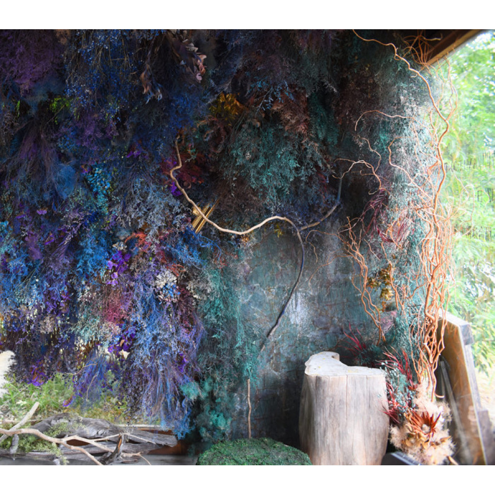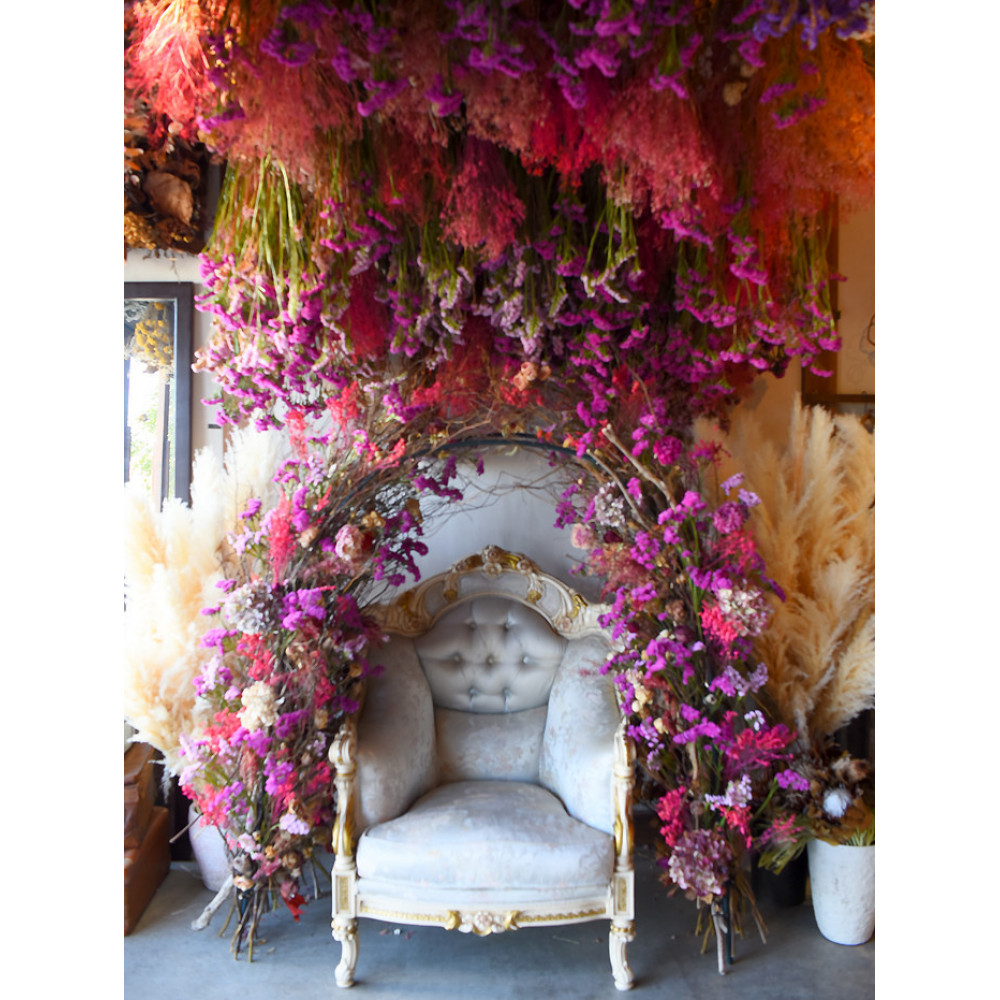 自然光に包まれ、季節で入れ替わる天井いっぱいのドライフラワー。