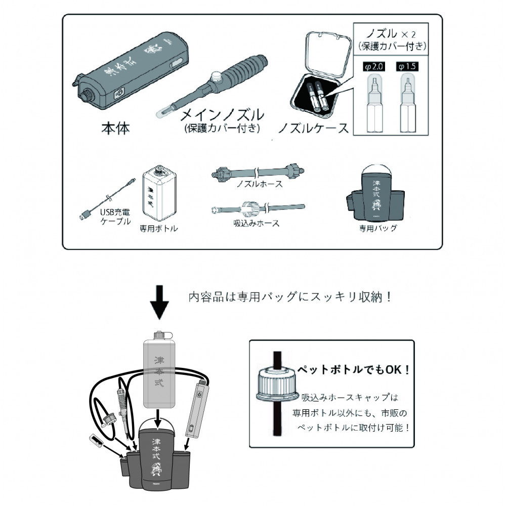 リムーバー+2種類の口径ノズルで様々なサイズの魚に対応。