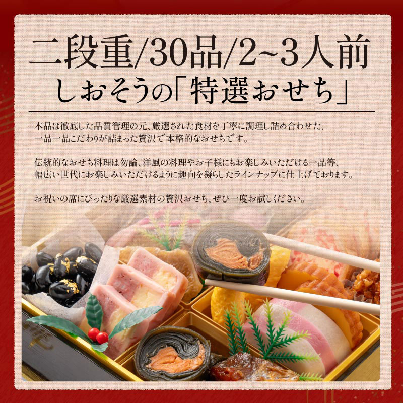 [先行予約・数量限定] 【12月31日お届け】しおそう オリジナル 『 迎春 おせち 』 2段重 [30品 2~3人前]