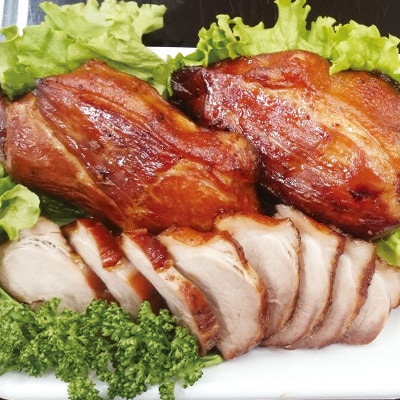 特にモモ焼豚は創業当時から人気の焼豚です。国産豚モモ肉の中でも特別な希少部位だけを使用しているため、厚切りステーキにしてもやわらかでジューシーな自慢の焼豚となっています。