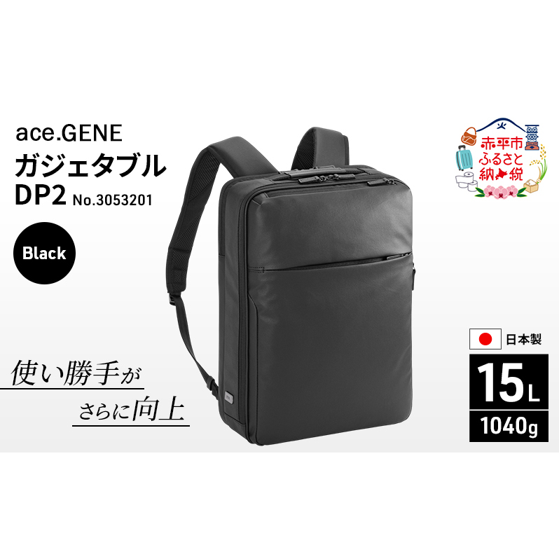 ace.GENE ガジェタブル DP2 ブラック No.3053201 ビジネス バッグ 出張 ノートPC かばん 通勤 収納力 PC 15L エース 日本製 国産 北海道 赤平市