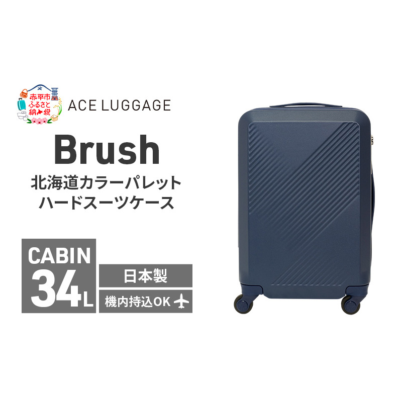 【赤平市】エースラゲージ株式会社北海道赤平工場・Brush 北海道カラーパレットハードスーツケース 34L CABIN_No.5801177 函館ネイビー