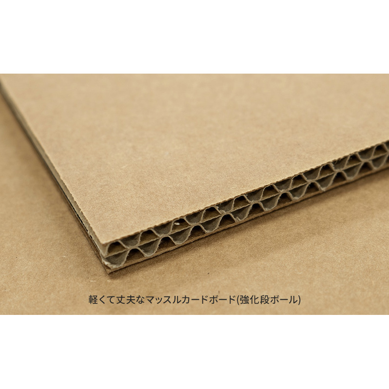 本体素材には、タフなのに軽いマッスルカードボード=重量物用ダンボール(強化ダンボール)を採用。寝室からリビングへ、リビングから書斎へ、「簡単に模様替えしたいな」「自分だけの落ち着く空間をサクッと作れないかな」の気持ちに応える、移動しやすいプロダクトです。