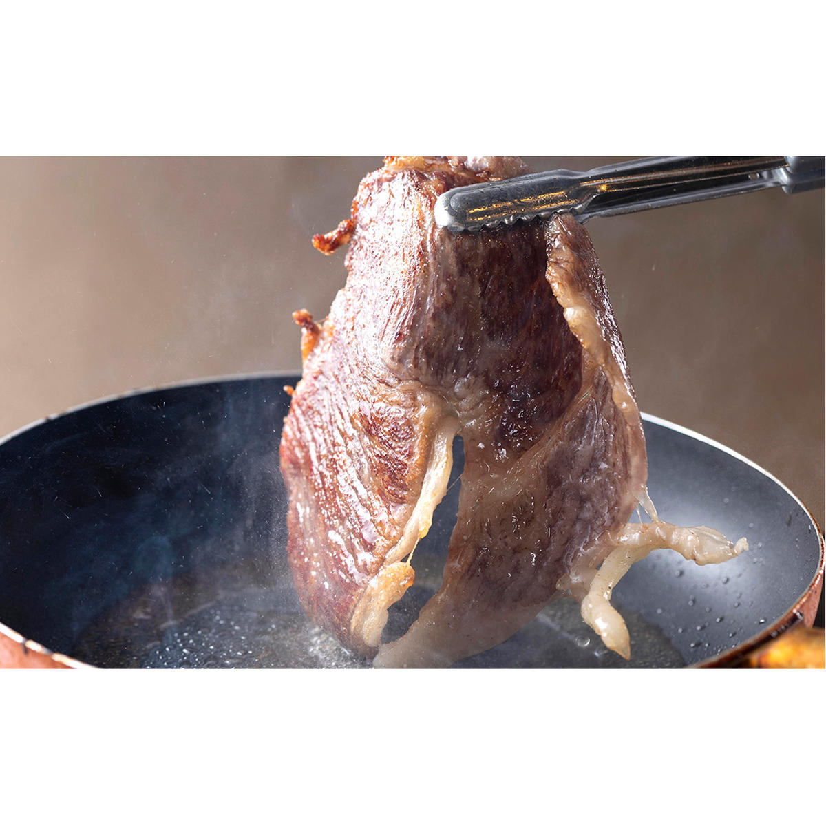 お好みに応じてカットいたします。ステーキ用にはこのくらいの厚さで、もう半分はすき焼き用に……などカットの種類を変えることもできます。もちろんドーンとブロックのままでもOK。
