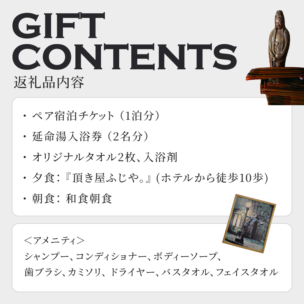 ほんまちホテルの銭湯入浴券付きペア宿泊チケット(1泊2食付き)