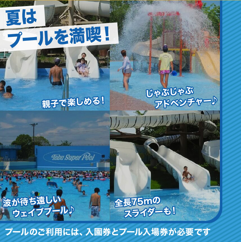 ●東武スーパープール・特別催事・ポニーライド・コインマシーン等はご利用いただけません。別途チケットが必要となります。