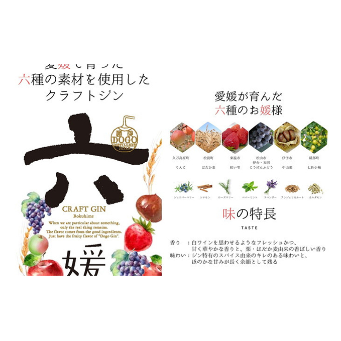 愛媛県産素材のボタニカル使用にこだわった<スピリッツ>クラフトジン「道後ジン 六媛」が誕生しました。