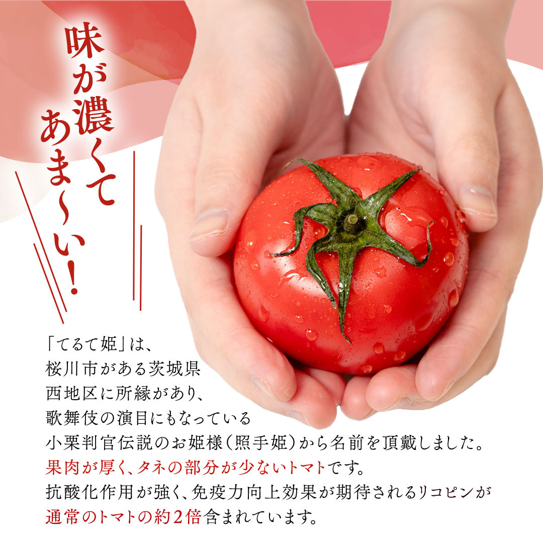 このトマトの名前「てるて姫」は、茨城県西地域に伝わる小栗判官伝説のヒロイン、「照手姫」に由来します。困難を乗り越え、幸せを掴んだ照手姫のように、このトマトを食べることで、皆様にも笑顔になってほしい。そんな願いを込めて、大切に育てています。