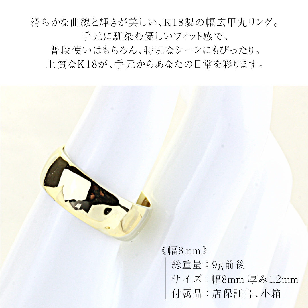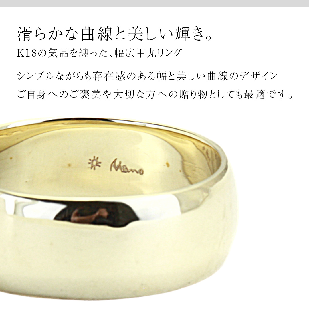 k18製 幅広の甲丸リング (幅8mm) フォーマル 冠婚葬祭 結婚式 ゴールド 甲丸 リング 指輪 アクセサリー シンプル 18金 金 ギフト 記念 贈り物 贈答用 アクセサリー ジュエリー ジュエリーマーノ 桜川市 [AH163sa]