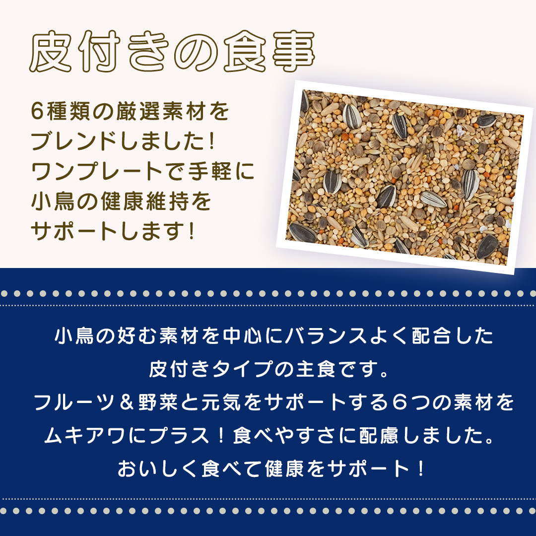 小鳥の好む素材を中心にバランスよく配合した皮付きタイプの主食!