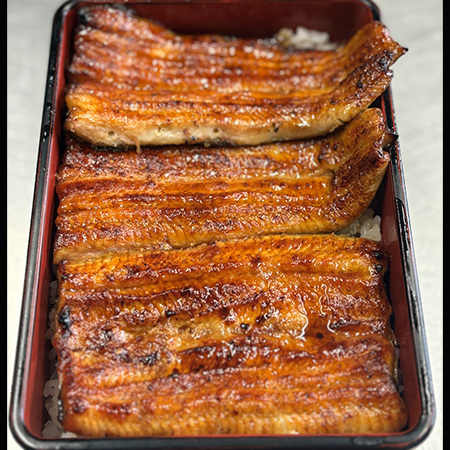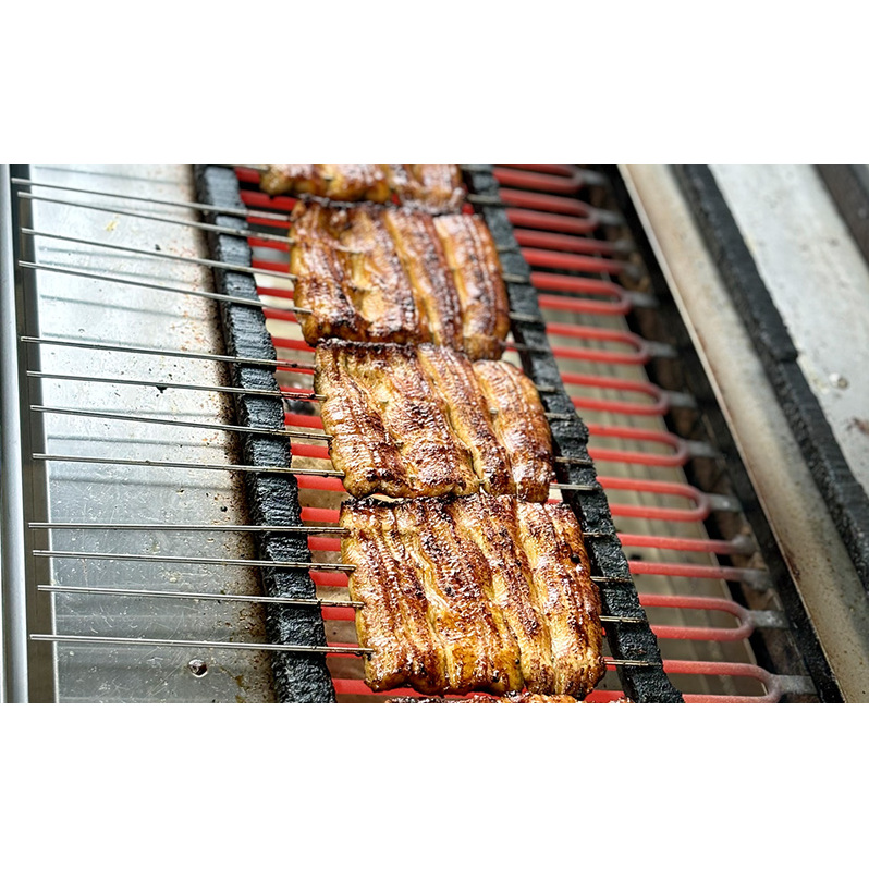 ふっくら香ばしいうなぎ成田新川の蒲焼き。秘伝のたれで3回付け焼きした自慢の一品です。