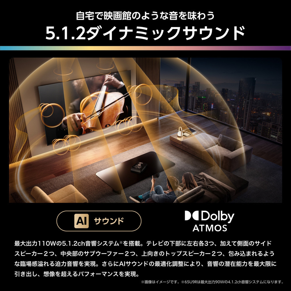 7. Hisense ハイセンス 3年保証【設置費込み】65V型 65U9R 4K Mini LED 量子ドット 4.1.2ch ダブル録画 チューナー内蔵 ゲームモード Pro ネット動画 YouTube Netflix スマート 2画面 Alexa対応 AirPlay2 液晶 テレビ TV 2025年モデル 壁掛け 人気 おすすめ 家電 送料無料