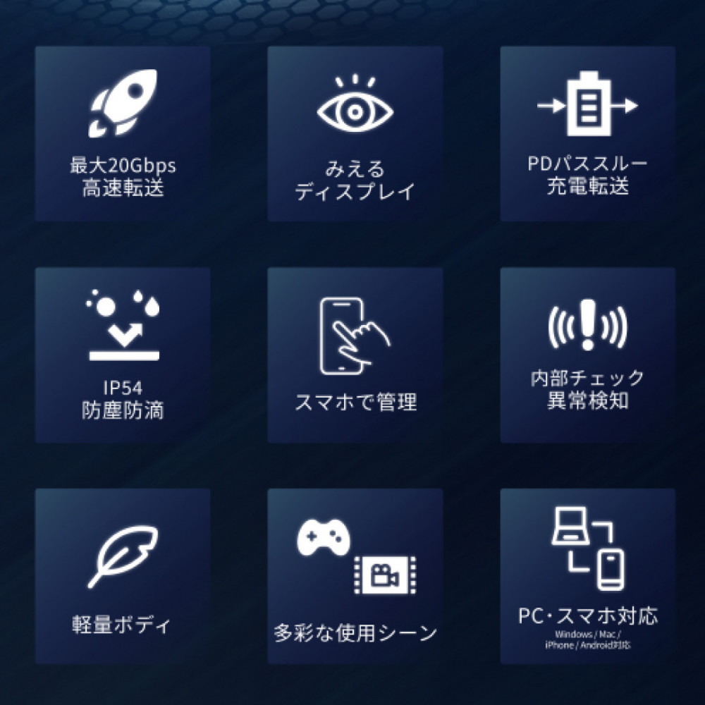 インターフェース:USB 20Gbps(USB3.2 Gen2x2) PD3.0