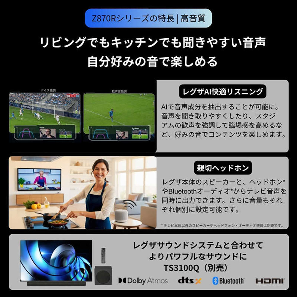 7. TVS REGZA【標準設置費込み】液晶テレビ REGZA ( レグザ ) 43V型 [ Bluetooth対応 / 4Kチューナー内蔵 / YouTube 対応 ] 43Z870R 【 テレビ TV 43型 43インチ 43V 液晶 4K Z870R series ハイグレードモデル 家電 人気 おすすめ 】