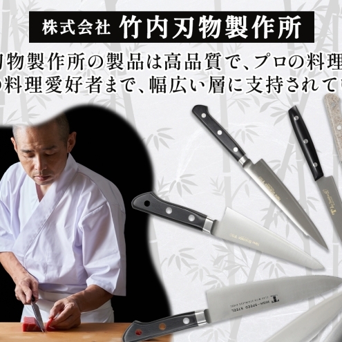 高い切れ味の持続性と、錆びにくい軟質ステンレスを採用した竹内刃物製作所の牛刀包丁は、