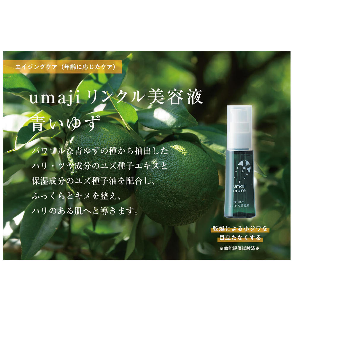 青ゆずのユズ種子エキスを配合したumajiスキンケアです。