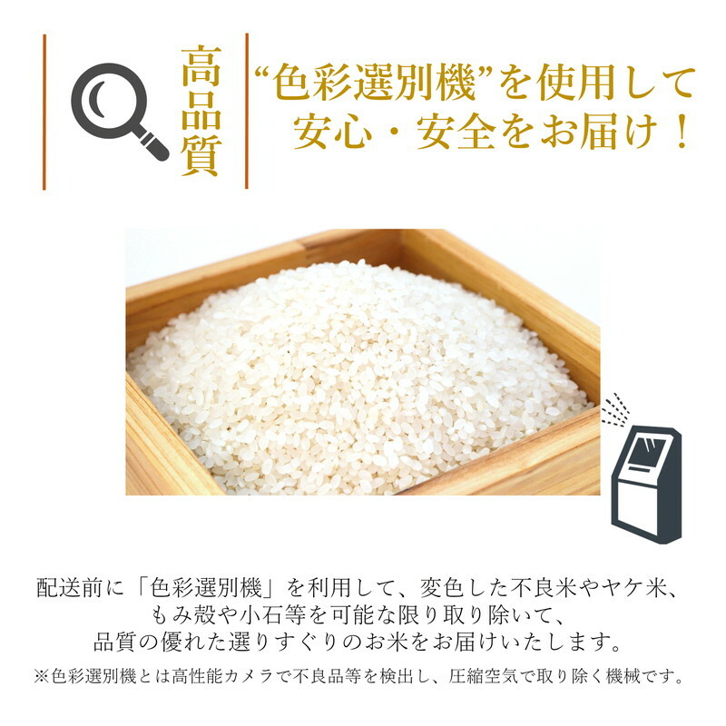「色彩選別機」を使用し、変色した不良米や焼け米などを除去することで、品質の優れた選りすぐりのお米をお届けします。