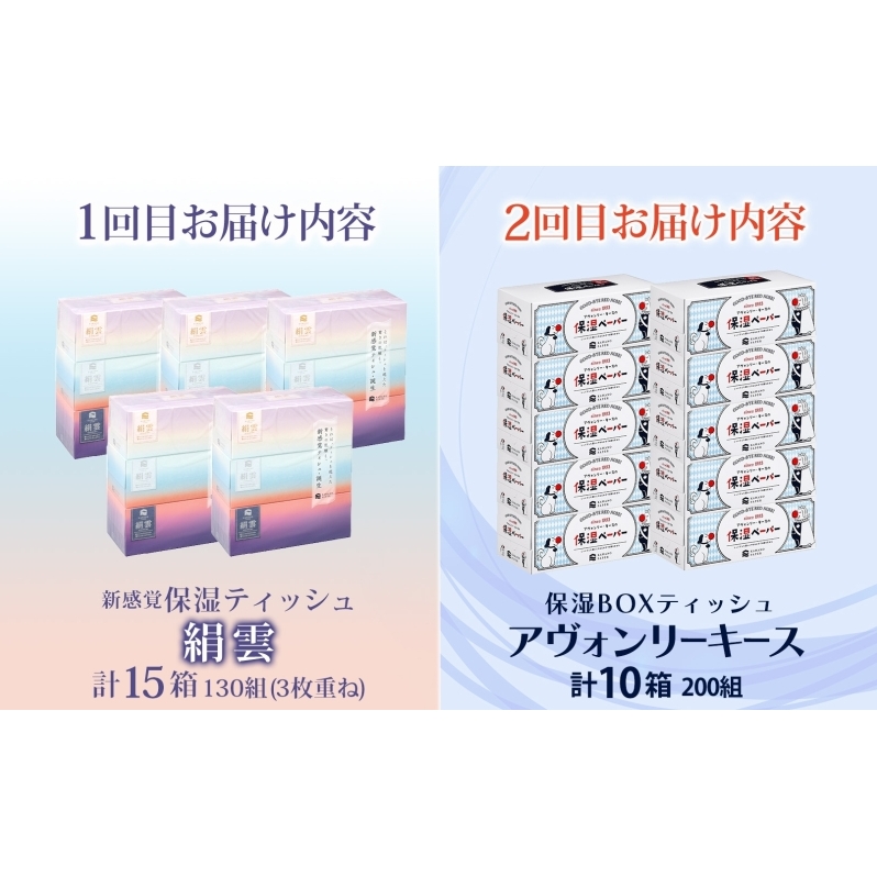 頒布会2回 新保湿ティッシュ 絹雲 ボックスティッシュ 130組( 3枚重ね )×15箱 河野製紙 アヴォンリーキース 10箱 やわらかい まとめ買い 備蓄 日用品 常備品 消耗品 大容量 防災 埼玉県 蓮田市