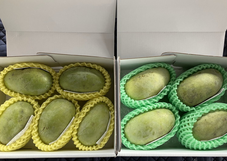 青過ぎるものを冷蔵庫にいれますと、うまく熟さないので、完熟に近いものを冷蔵発送いたします。