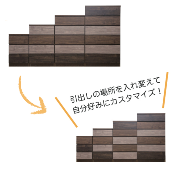 引き出しの場所を入れ替えて、自分好みにカスタマイズできます。