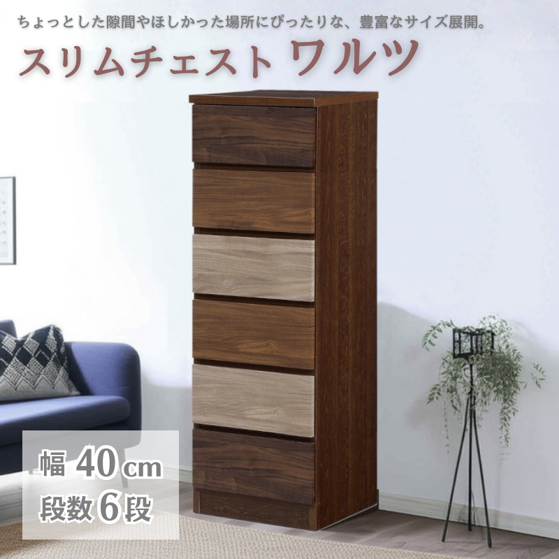 7. スリムチェスト ワルツ 幅40-6段 隙間収納【諸富家具】:C134-005