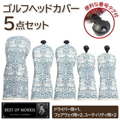 モリス(Morris)柄のコットン100%生地使用したゴルフヘッドカバー5点セット