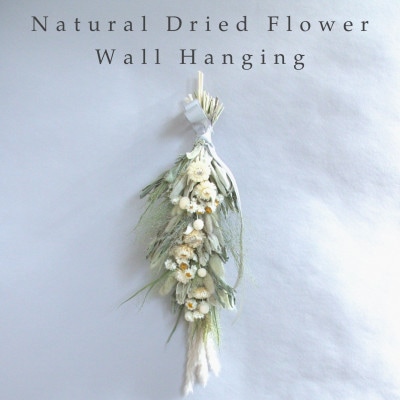 信州八ヶ岳の麓から贈るドライフラワーウォールハンギング(ラムズイヤーホワイト)【1660995】