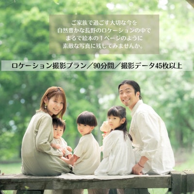 長野の美しい自然の中でのロケーション撮影。まるで絵本の1ページのような家族写真に。