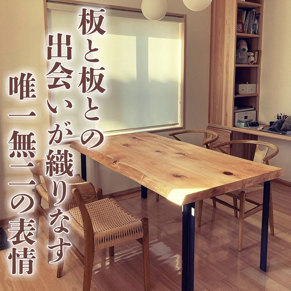 70~100年もの樹齢を持つ大木から製材した板を使用。希少価値の高い逸品です。