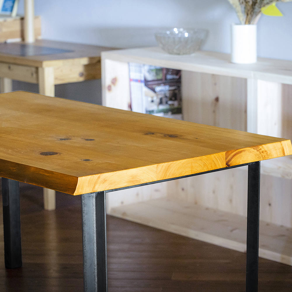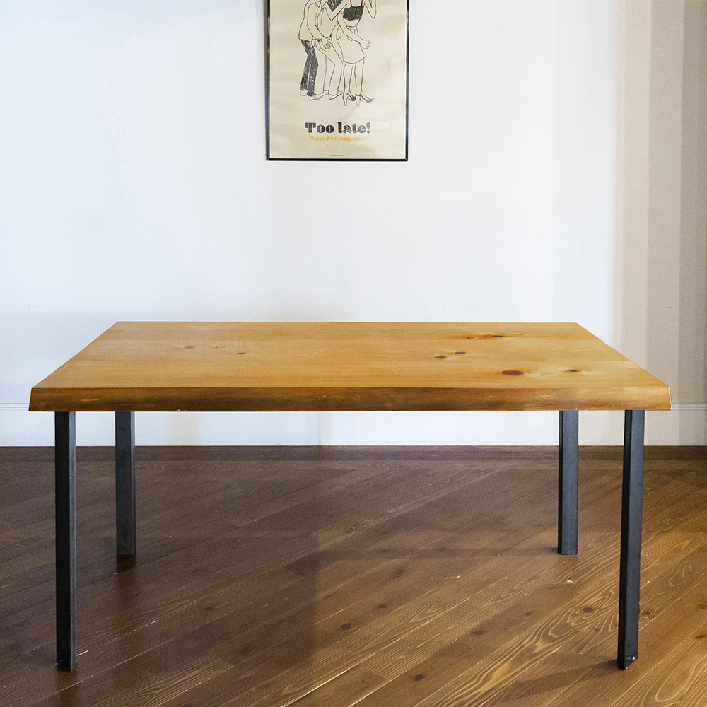 テーブル脚は木の経年変化に合うよう、鉄製の脚を採用。