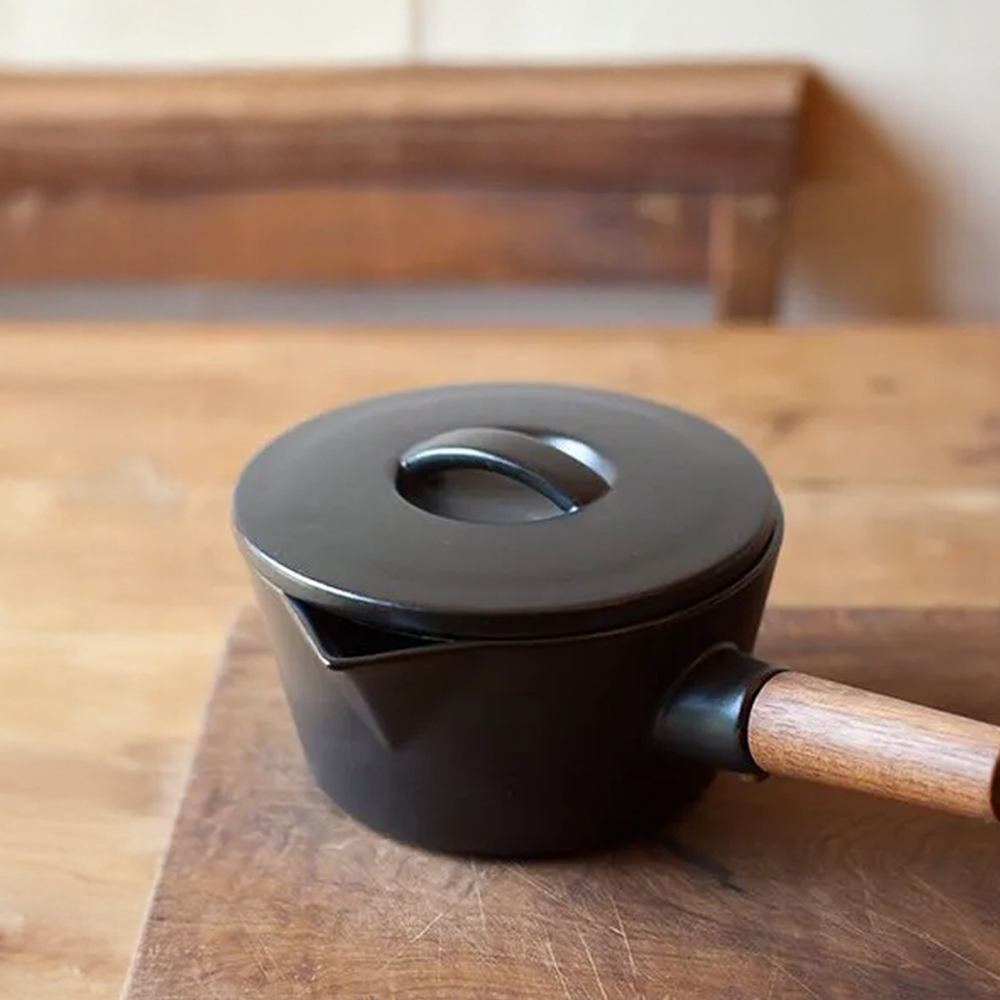 6. 【萬古焼(ばんこやき)】コロンとかわいいフォルムで使い勝手の良いミルクパン 4th-market リコッタ ミルクパン 蓋つき 黒 1個【鍋、土鍋、煮物、スープ、万能、おしゃれ、かわいい、結婚祝、出産祝、セット、贈答、普段使い、手作り、冬、煮込み、一人用、家庭用、一人暮らし、家族、ファミリー、新生活、スープ、三重県 四日市市 ふるさと納税】