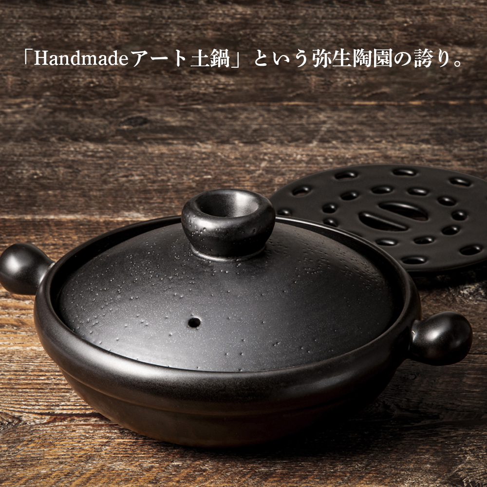 【萬古焼(ばんこやき)】Handmade土鍋 弥生陶園 職人が一つ一つ丁寧に成形し焼き上げる、こだわりの土鍋 土鍋の国内生産80%のシェアを誇る伝統の萬古焼 TS-101S 丸むし土鍋7号(すのこ付き 黒釉)”煮る・焼く・蒸す“毎日使いたくなる万能調理土鍋【萬古焼、ばんこやき、鍋、ごはん鍋、耐久性、人気、おすすめ、余熱調理、使いやすい、耐熱調理、直火、蓄熱調理、節約、米、ごはん、旨み、うまみ】