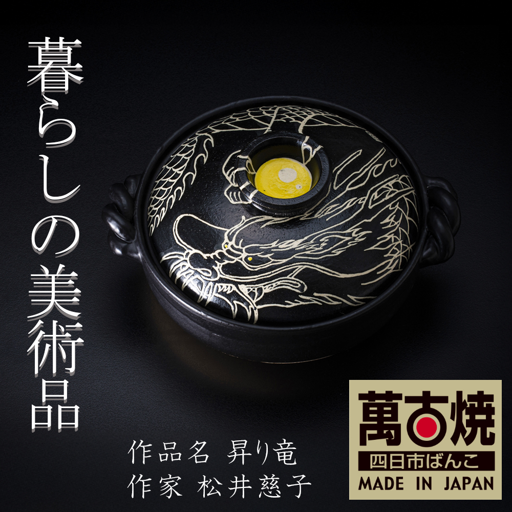 【萬古焼】暮らしの美術品 絵付けアーティストの個性が光るHandmade土鍋。絵付けART工房・平尾製陶 9寸 破墨彩土鍋 「昇り竜」【手描き、土鍋、ハンドメイド、アート、デザイン、鍋、 家庭用、4人用、4人前、家族、冬、煮込み、手芸、工芸、三重県、四日市市、ふるさと納税】